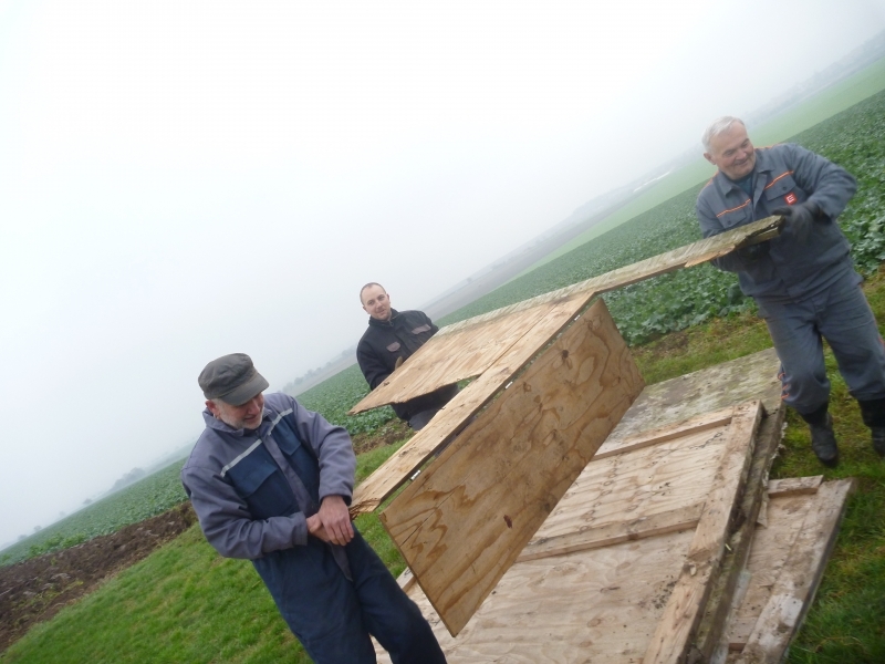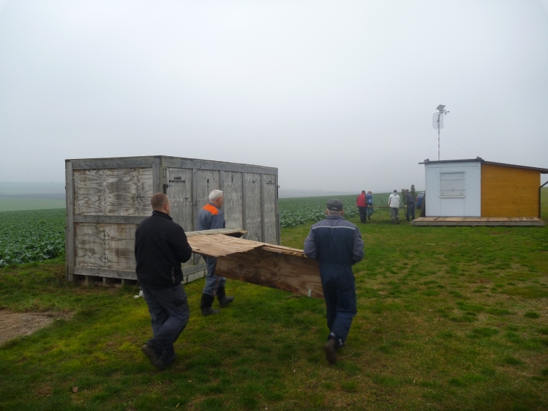 Prudký vítr, který odnesl střechu jedné z beden 100m daleko do pole, nás trochu popostrčil k finálnímu ustavení beden.