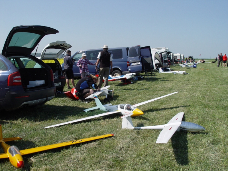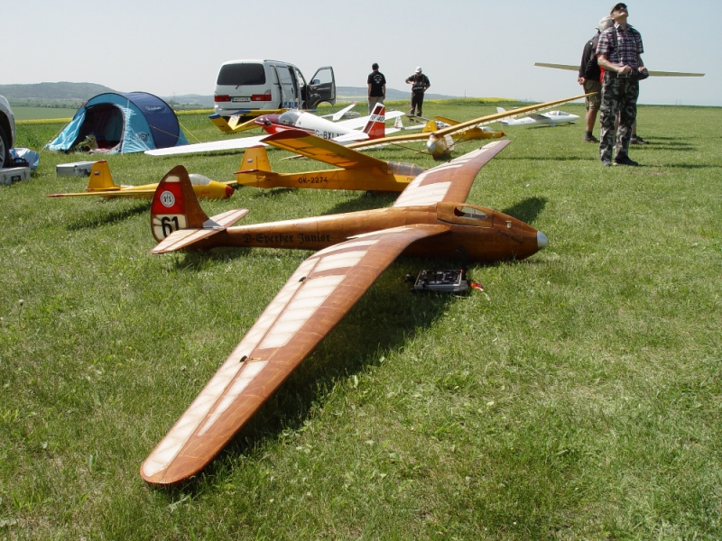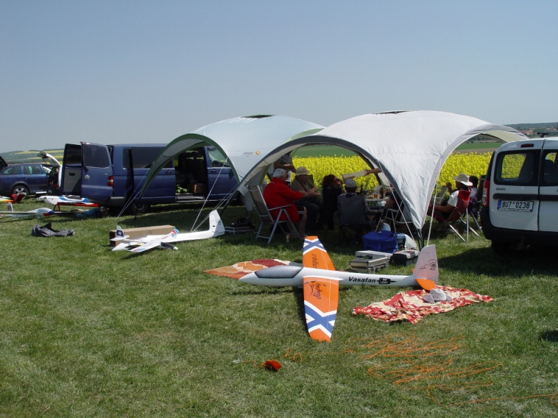 modely rychle nabíraly bezpečnou výšku. K maximální spokojenosti chyběly na modré obloze mráčky, pod kterými by byly modely lépe vidět. Takhle se v modři oblohy i modely s rozpětím křídel až 5,5m dokázaly v některých okamžicích ztratit a pilotům nezbývalo než trpělivě čekat, až se v náklonu v zatáčce objeví. Přistání modelů byla mnohdy vedena v rychlém sledu, to nastalo v okamžiku, kdy se stoupavé proudy rozpadly a pilotům modelů nezbývalo než se řadit za sebe a volit optimální dráhu na přistání. I přes drobné problémy žádný model neskončil těžce poškozený. K všeobecné spokojenosti přispěly přístřešky Jirků Bačinského a Novotn&ea cute;ho a samozřejmě „Báčovo gril“ na kterém se krásně opékaly buřtíky dodané oslavencem Martinem Zofem. Sobota prostě byla perfektní a byla završena rychlostním rekordem modelu Stingray Jirky Bačinského, když se ve vodorovném průletu prohnal nad lounským pláckem rychlostí 246km/h. To byl „hučák“.