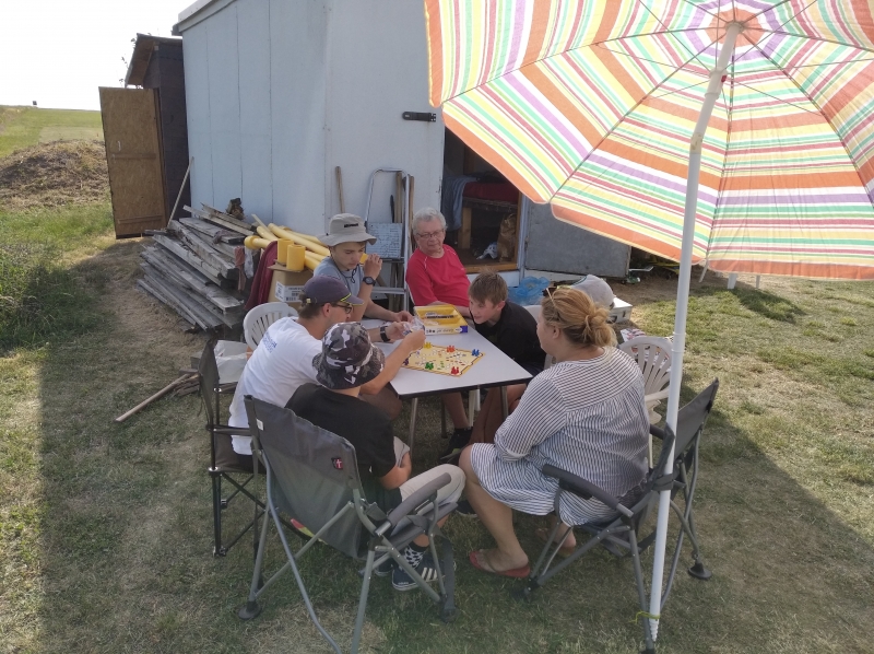 Sjeli jsme se v pátek po škole, po práci, na letišti a vybili jsme hned veškeré baterky. Naštěstí máme nový výkonný solár, tak jsme jen bez přestávky měnili baterky u nabíječek. Počasí nám výhledově moc nepřálo, mělo dosti foukat s teplotami nad 30°C. Nakonec jsme si polítali v sobotu i neděli před, i po, snídani, kdy foukalo naprosto minimálně. To samé v sobotu večer. Přes největší pařák, v sobotu odpoledne, jsme vzali mládež do stínu stromů, na Lipenecký rybník, kde jsme si s minimálními škodami na majetku zajezdili se svými lodičkami. Náš pan předseda se obětoval a zůstal na letišti aby po nás umyl nádobí po obědě a také připravil vynikající večeři, jako vždy. Po setmění, když už jsme na letadla opravdu neviděli, se hrály už jen hry jako například pétanque. V neděli jsme se již začali pomalu balit a rozjíždět do svých domovů. Někteří již před obědem, někteří ještě vyčkali a vyrazili až po obědě.