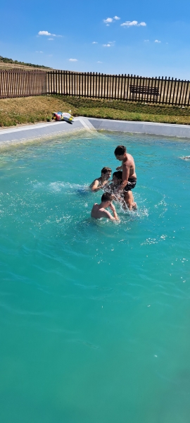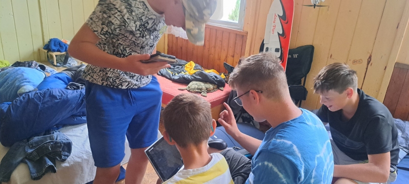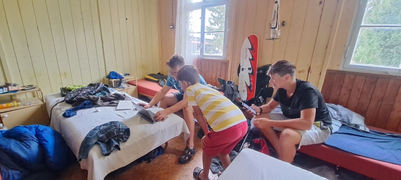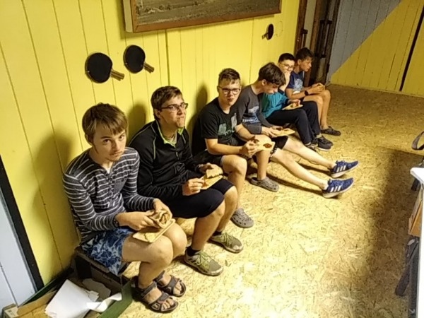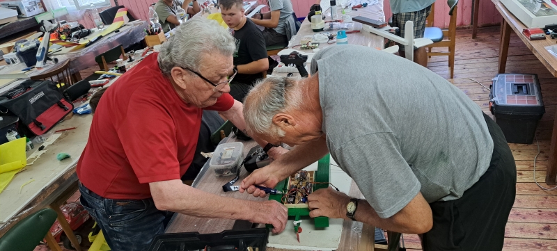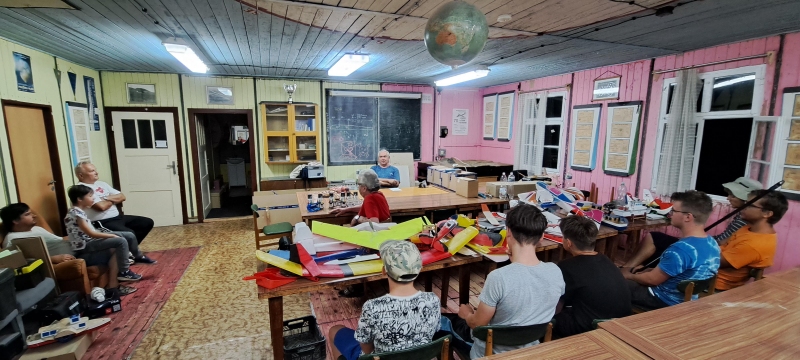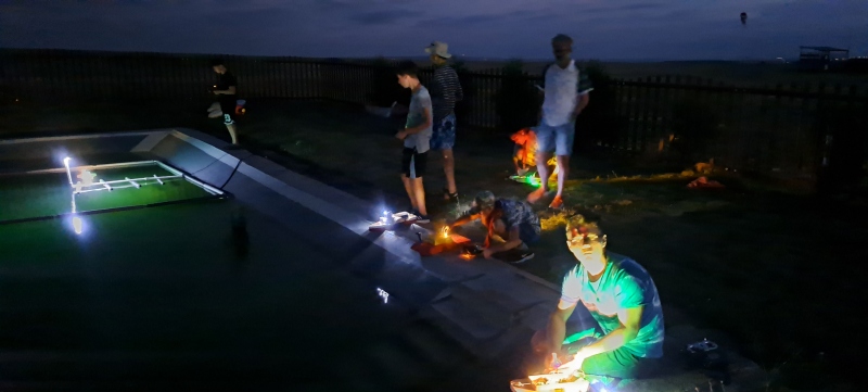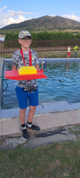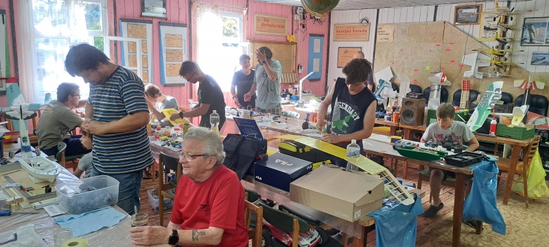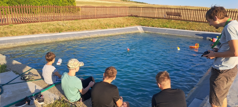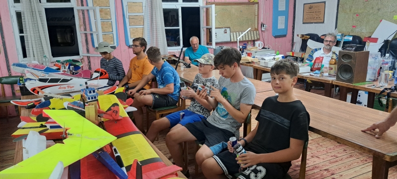 Každé ráno děti nemohly dospat a vstávaly brzy, aby si ještě před snídaní zalétaly, než začne foukat. Počasí nám pro létání moc nepřálo a od dopoledne do večera pofukovalo. Někdy více, někdy méně. Ještě že máme k dispozici nádrž, tam jsme vzali zchladit naše loďky, ať už pomalé parníčky nebo švihadla jako například kluzáky. Případně jsme se i zchladili my. Na dílně kluci dodělávali resty z uplynulého roku, případně opravovali drobná poškození a dočkali jsme se i záletu zcela nových RC házedel, se kterými je již brzy čeká soutěž. Jeden z našich kluků, Lukáš Lajsner, se již jedné soutěže zúčastnil spolu s dospělými, a to přímo na Rané. Vedl si velmi dobře s nejednou tisícovkou (maximální počet bodů v jednom kole, pozn. redakce) a umístil se na krásném 5. místě z 8. Pro všechny děti jsme také uspořádali soutěže a v průběhu týdne sbíraly body do celkové „výsledkovky“. Měli jsme závody například v parkování lodičkami do přístavu, oblétávání balónků s jejich modely Stepů, Videostop na poznávání pohádek a filmů nebo ježdění s autíčky kolem překážek na čas. Bodování pokojů proběhlo také, ale podívejte do galerie na fota z jejich pokoje, mnoho bodů v této „disciplíně“ nenasbíraly. Ale získaly zkušenosti při službách v kuchyni, kde pomáhaly umývat a utírat nádobí.