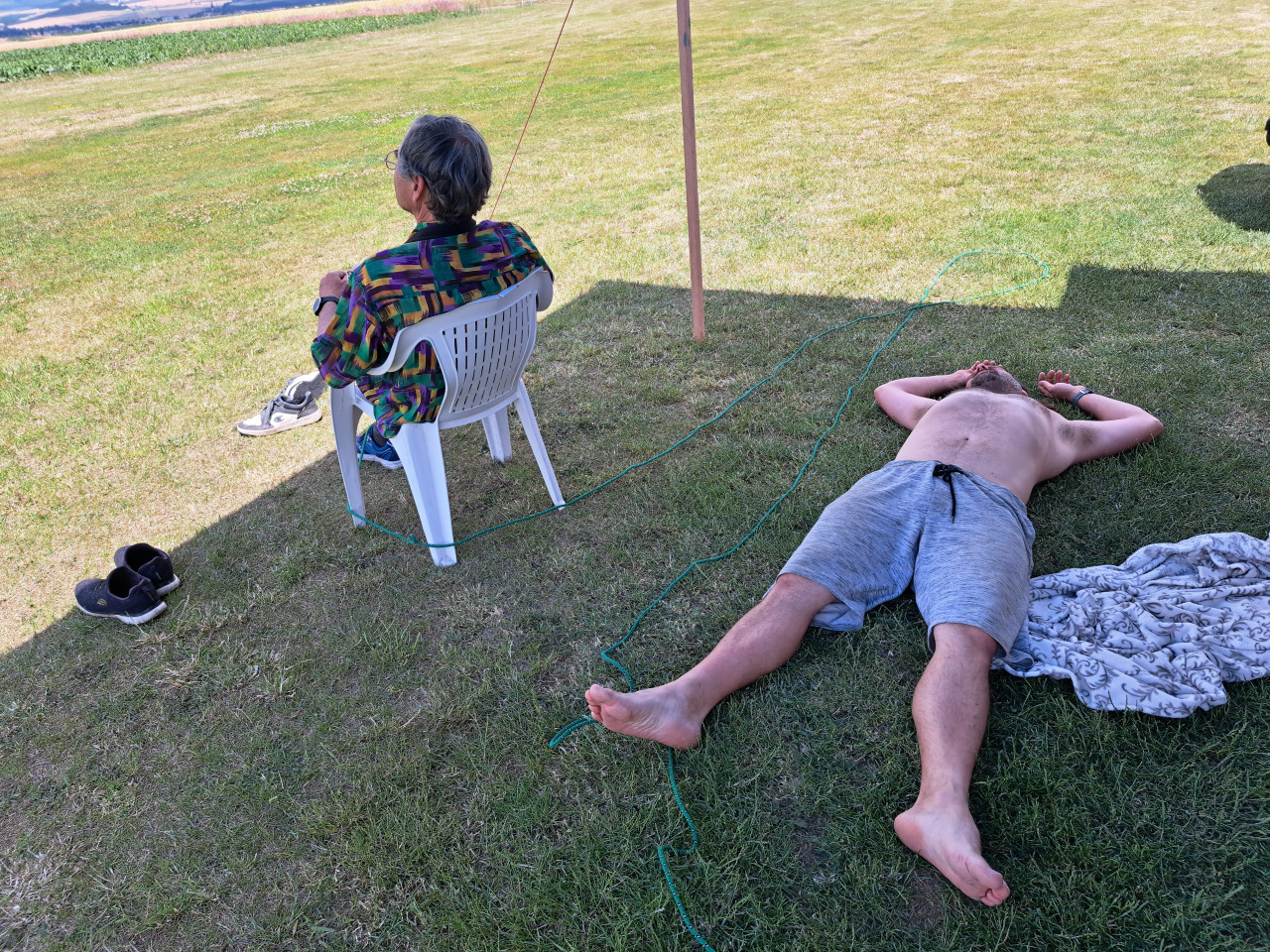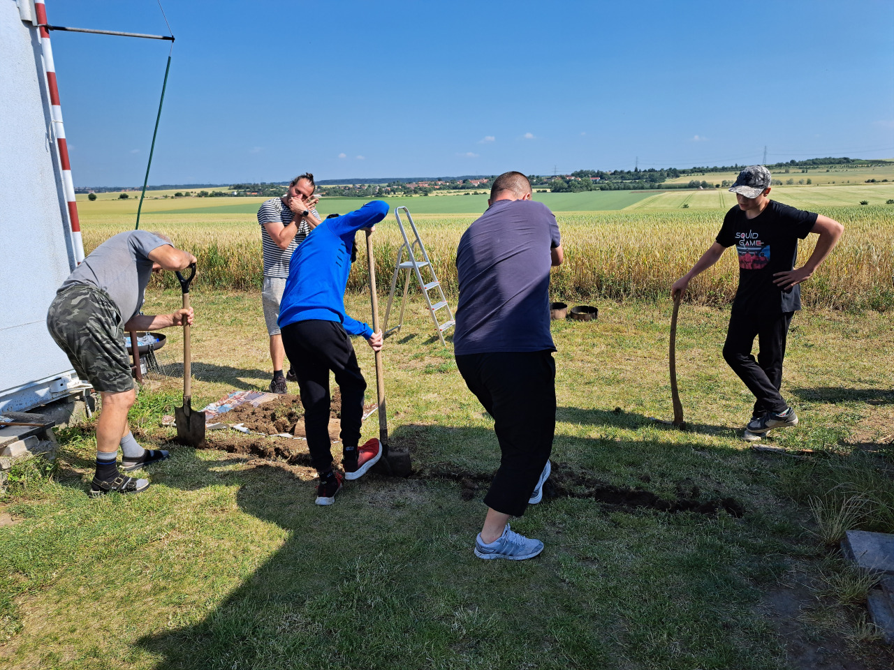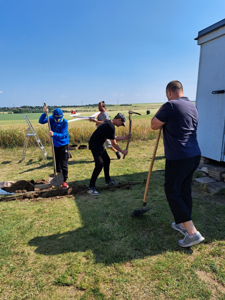 Kromě létání jsme i malinko vylepšili podmínky na letišti plachtou proti slunci a drobnému dešti. Všichni se také chopili kopáčů, lopat a jiného nářadí, zakopali jsme chráničku a máme tak elektrifikaci i v druhé buňce. To ocenili hlavně místní nocležníci Karel s Mírou. Jsem rád, že se nám daří tuto tradici obnovit a drobná vylepšení přispívají k pohodě a komfortu i pro další akce.
