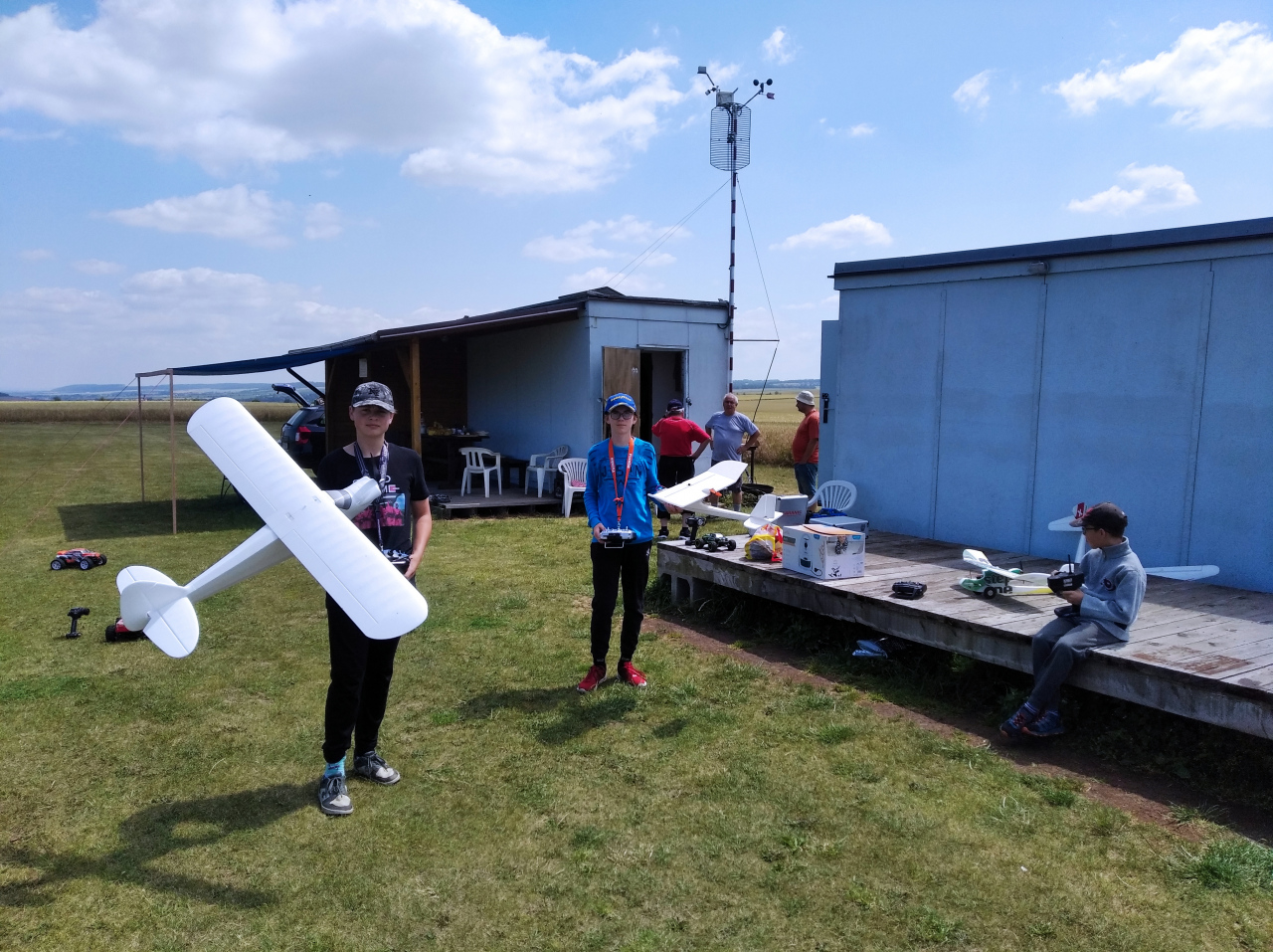 V pátek trochu zlobilo počasí, byla zima a téměř celou noc na sobotu poprchávalo. Petr ještě odpoledne vyzkoušel pevnost svojí kůže při průchodu ruky běžící vrtulí žhavíka. Žákům je třeba ukázat jak se to nedělá a jaké jsou následky. Naštěstí se vrtule zvládla otočit „jen“ třikrát a bylo z toho drobné škrábnutí.