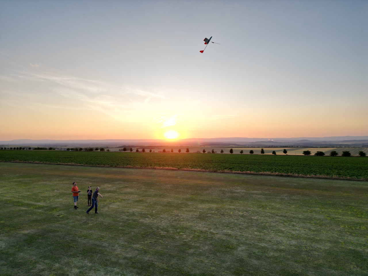 Sobota byla už lepší. Ráno nás příjemně překvapilo parádní mlhou v okolních údolích. Přes den sice dost foukalo, ale aspoň se kluci zocelují v létaní ve větru. Odpoledne bylo krásně slunečné. Proběhla i pátrací akce – hledání zafouknutého modelu praglajdu pomocí kvadrokoptéry. Odhady místa dopadu se velmi lišily, nicméně téměř dva kilometry vzdálený stroj se podařilo vypátrat a zachránit.