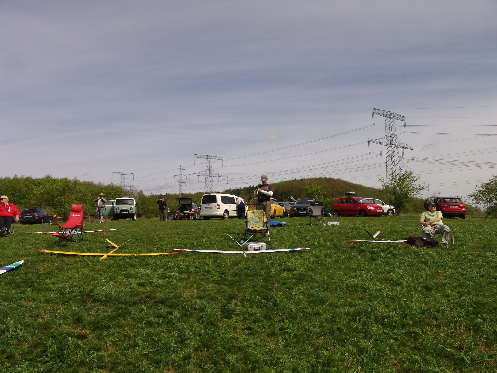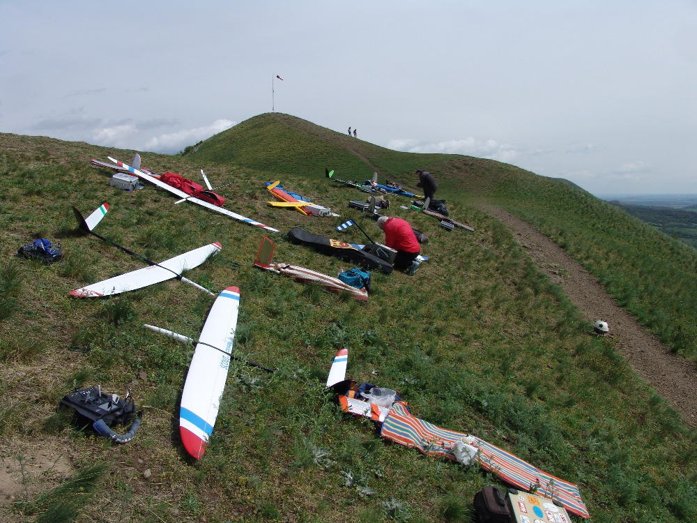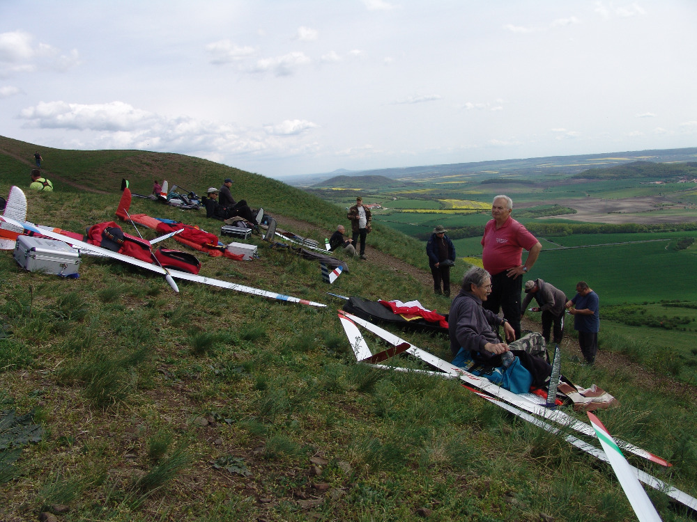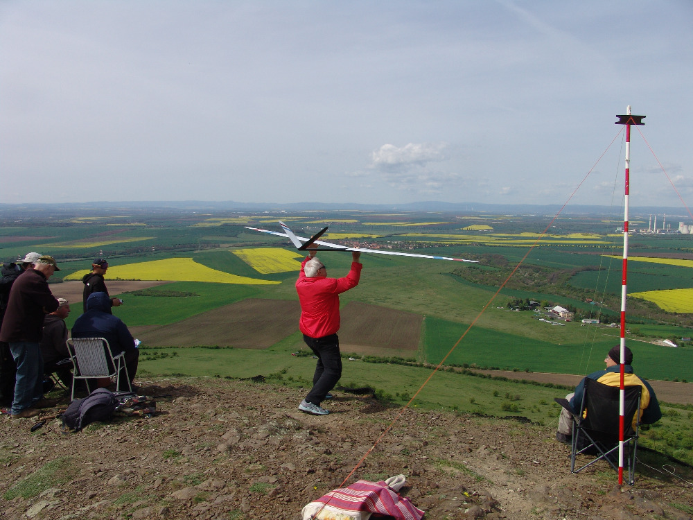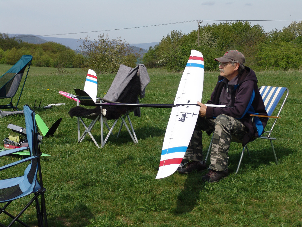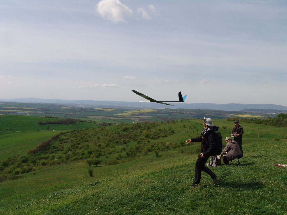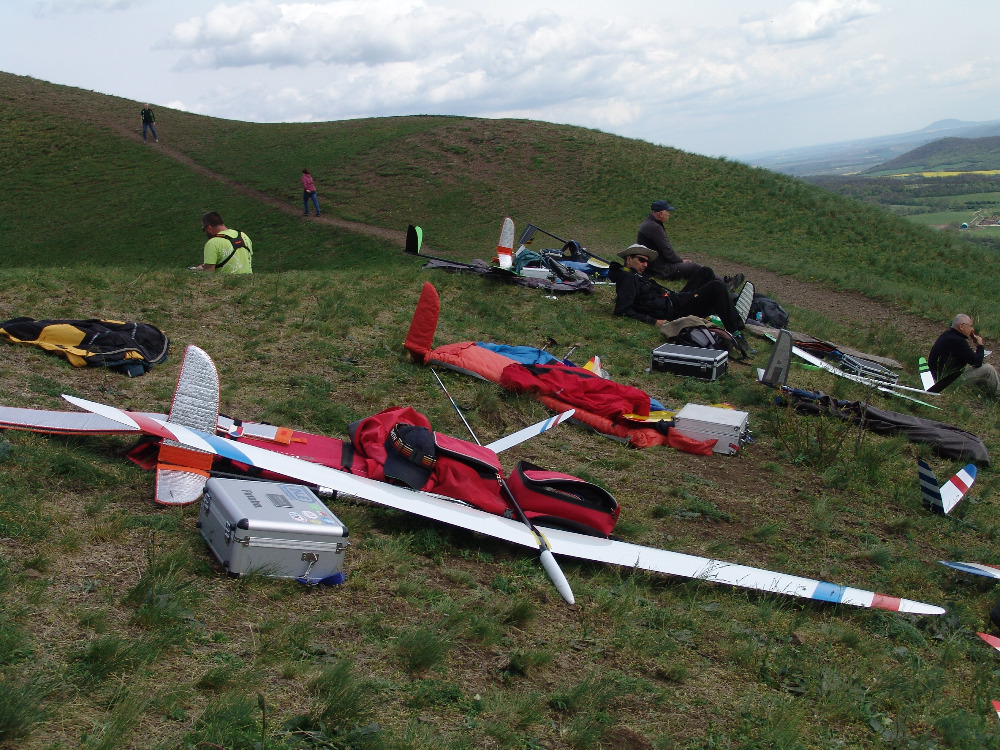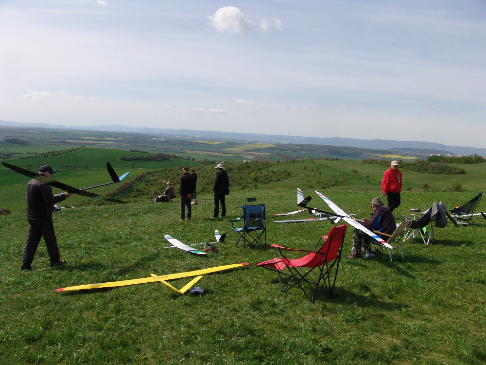 Dopolední čekání na vítr si někteří krátili starty na gumě a hledáním termiky.
