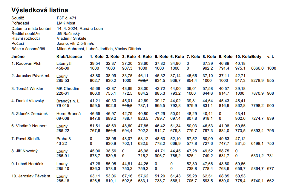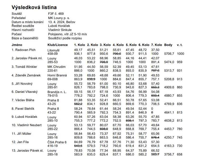 Celkové výsledky ke stažení: https://svazmodelaru.cz/klem/Kalend2024/pv/v469.pdf