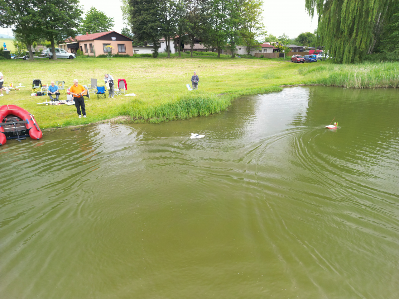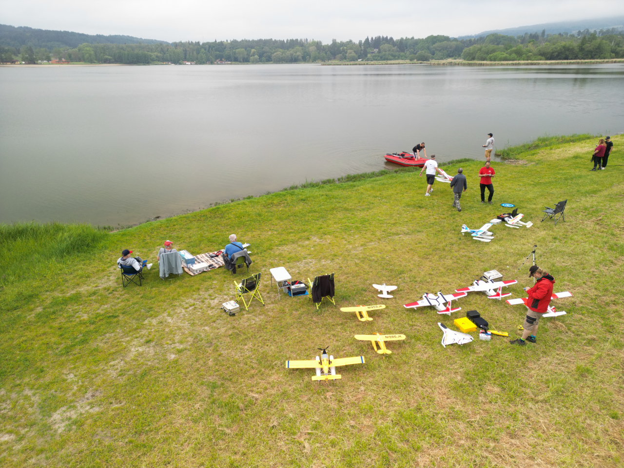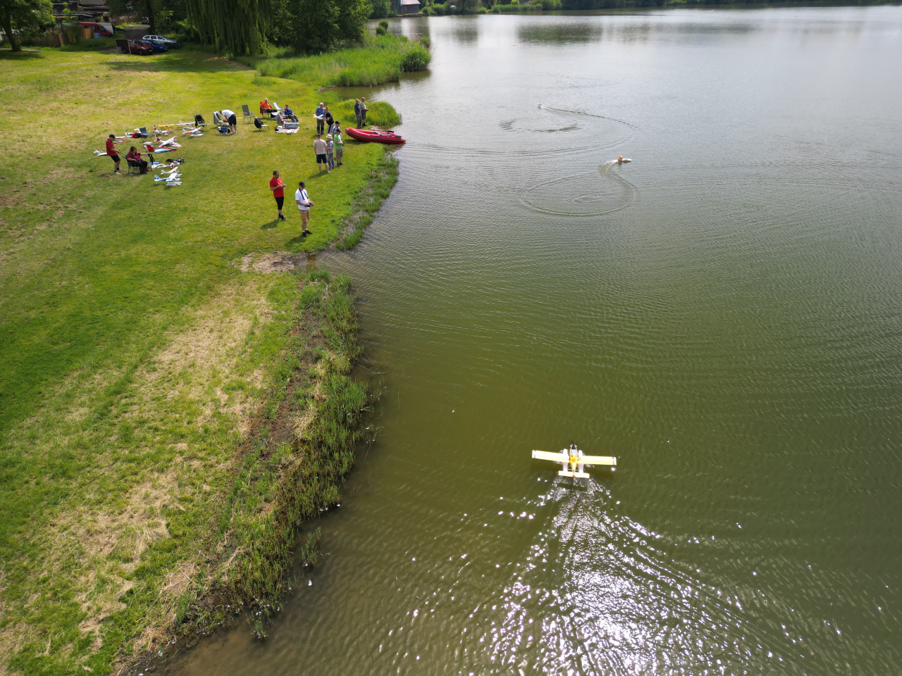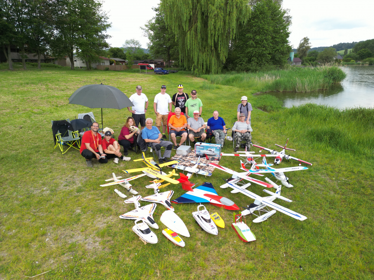 Celý týden jsme s napětím sledovali předpověď počasí. Nakonec nám nebe dopřálo a bylo příjenmé počasí. Létalo se s mnoha modely a doplnili nás členové s lodičkami. Odpoledne nás pozlobila přeháňka právě při pořizování společné fotografie. Jak to tak bývá, neobešlo se to bez drobných karambolů, ale nic jsme fatálně nerozbili, takže akci lze prohlásit za velmi úspěšnou. S radostí se zúčastníme dalšího kola této akce. Cestou do Loun nás ještě zastihla brutální bouřka, která už od odpoledne strašila kolem. Dík všem za pohodovou atmosféru. Zvláštní poděkování patří Rogáskovi za organizaci a zařízení zázemí v kempu – DÍKY.