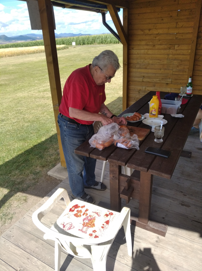Na chvilku se za námi stavil i Jirka Bačinský z LMK Most s rodinou a přivezl nám své upečené plachetničky z listového těsta. Multifunkční modelář. Večer, když vítr „lehnul“, se ještě zastavil předvést svůj nový model Swifta.