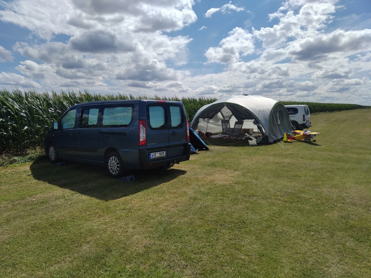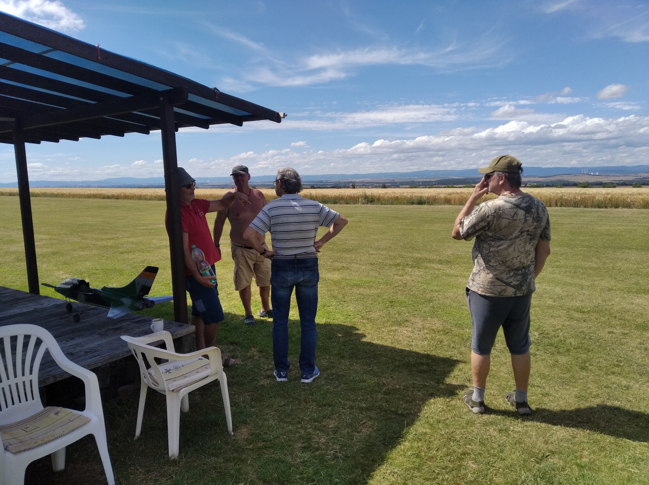 V sobotu jsme se sešli na našem letišti abychom oslavili desáté výročí našeho pobytu v těchto končinách. Vítr nám příliš nepřál, foukalo stabilně kolem šesti metrů, a tak létali pouze odvážlivci s výkonnými plachtivými stroji a nebo ti, jejichž poletuchy se dají lehce opravit vteřiňákem. Někteří účastníci si při pohledu na předpověď počasí pro jistotu přibalili draky. Ti si zalétali asi nejvíce.